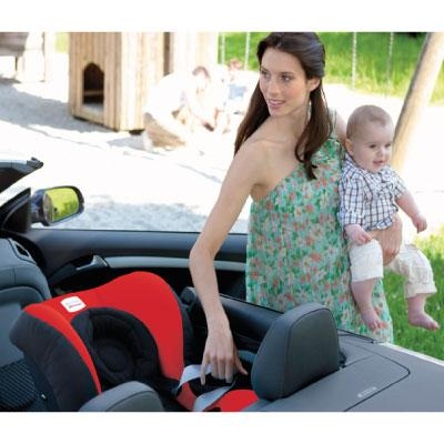 Il bambino viene fissato con la cintura integrale del sedile dell’auto e a sua volta il sedile è fissato all’auto con la cintura a 3 punti. Consigliamo l’uso in senso contrario alla direzione di marcia il più a lungo possibile, finché il bambino non raggiunge i 13 kg di peso o finché la testa del bambino non sporge oltre il bordo della poltroncina ed il bambino è in grado di stare liberamente seduto da solo.