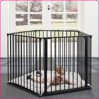 Facile da assemblare come recinto, box, cancelletto di sicurezza, protezione per camini, stufe e divisorio per stanza. Le opzioni sono infinite. La sezione della porta consente un facile accesso e l'estrazione del bambino in maniera ergonomica da parte dell'adulto. Quando viene utilizzata come barriera di sicurezza può essere smontata dalla parete su cui è stata montata senza l'uso di utensili. Può essere piegata in maniera compatta a partire da tutte le configurazioni senza essere smontata e senza l'uso di utensili. Struttura in acciaio robusto.